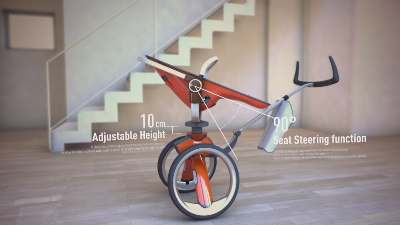 「Buggy Stroller」は、2輪のベビーカー。通常の3輪または4輪のベビーカーよりも、本体がずっとコンパクトなのが特徴だ。このコンパクトなボディにより、電車などへの持ち込みが楽になる。2輪のベビーカーを実現するのが、ジャイロスコープを活用したスタビライザー。これにより、2輪であっても、3輪や4輪のベビーカー並みの高い安定性を保てるという。「Buggy Stroller」のもう1つの特徴は、ユースケースにあわせて形態を変えられる点。駐車時にはタイヤを横に開き、ベビーカーの足として利用できる。この状態で、背もたれのポジションをアップライトなものにすれば、ベビーカーをダイニングチェアとして利用可能だ。日本では3月26日に、電車やバスでのベビーカー利用者の優先スペースを示すマークを国土交通省が決定したばかり。優先スペースであれば、利用者は気兼ねすることなくベビーカーを持ち込みできるだろう。