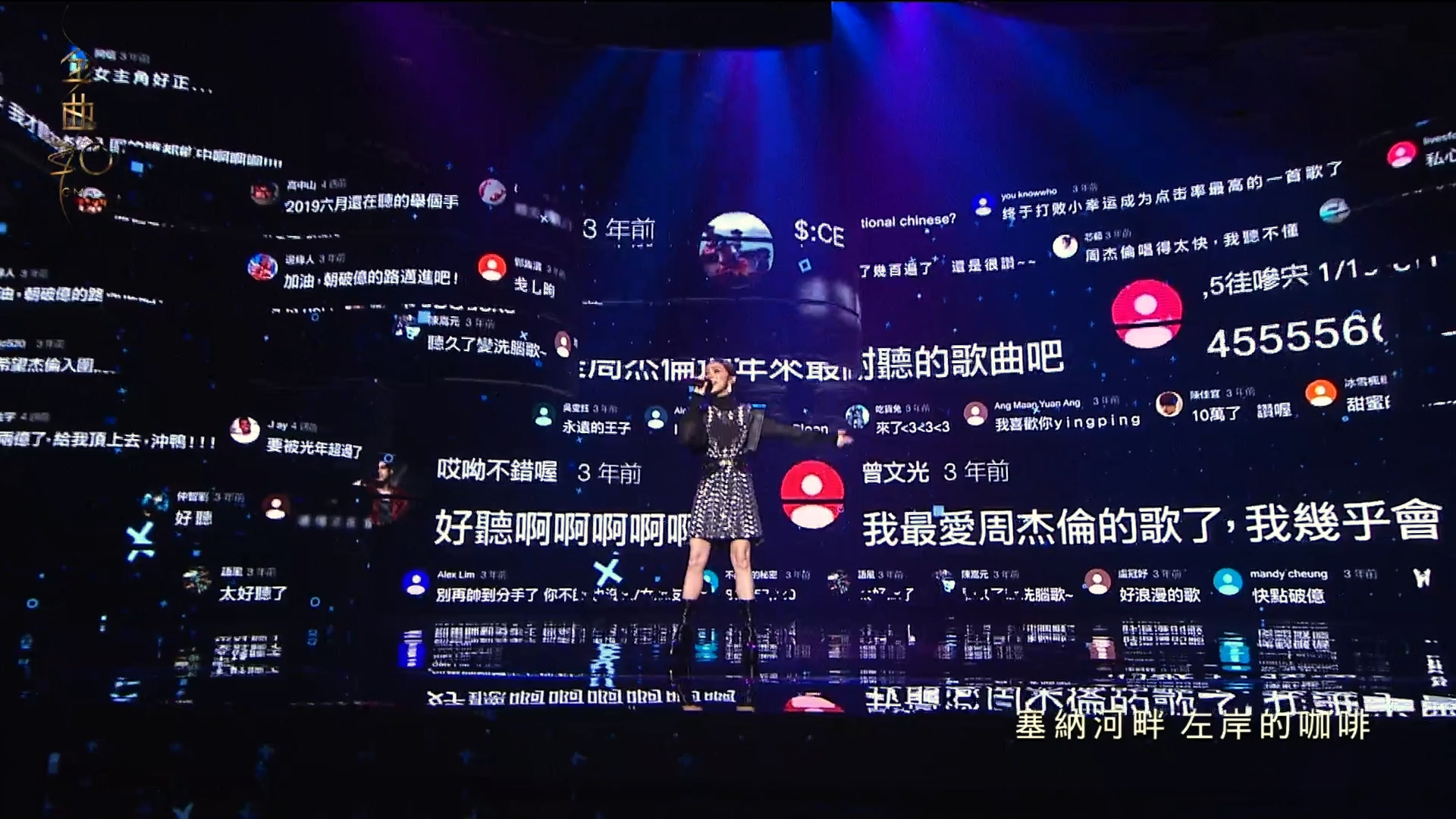透過團隊技術同仁所使用的網路爬蟲技術,快速將所有留言全部即時抓取下來,並直接落版餵進先前已設計好的 UI 之中,配合此次舞台的多層曲面螢幕放送出去(當然也有過濾掉不雅文字),藉由數以千萬計的大量留言,在舞台上堆疊出巨量訊息海的壯觀視覺。